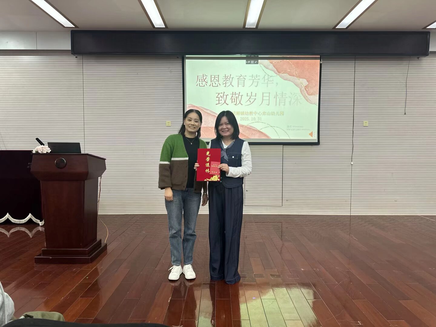 为致敬深耕幼教事业三十余载的周向群老师,传承勤悦文化与高尚师德,弇山幼儿园于2025年10月31日在多功能活动室举办“感恩教育芳华,致敬岁月情深”主题荣休欢送会,全体教师齐聚一堂,为周老师送上诚挚祝福。
