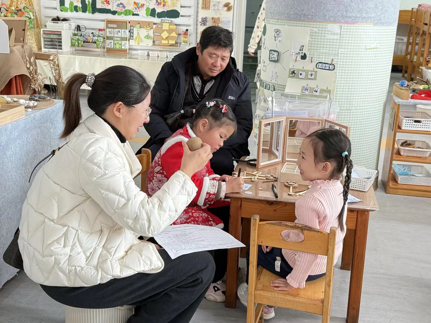 活动中,家长们循着幼儿一日活动轨迹,依次观摩了入园签到、晨间锻炼、点心时光、集体教学、区域活动、户外游戏及午餐环节。晨锻时,孩子们活力满满地跳跃、奔跑,家长们纷纷用镜头记录童真瞬间;集体活动中,幼儿专注互动、积极应答,展现出良好的学习习惯;区域活动中,孩子们在建构区、美工区、益智区等各个游戏区域自主探索,动手能力与创造力让家长们频频点头。