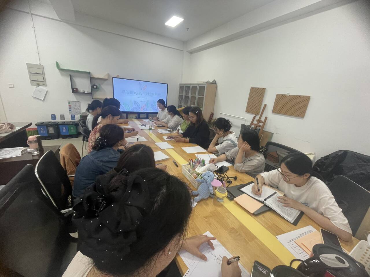 活动伊始,教研组长带领大家共读专业书籍《培养小小探索家》,并融合前沿培训理念,通过精炼的PPT,系统梳理了项目化学习(PBL)在学前阶段的落地模型与方法,深入解读了PBL的四大底层追求和话题自查清单。同时,又介绍了“蝴蝶结模型” 与 KMLA表格,为项目开启后的路径规划与经验创设提供了具体“脚手架”。接着各班两位老师结合班级幼儿兴趣、最近开展的活动等选择了“螃蟹”“兔子”“金鱼”等话题进行网络图的绘制、再利用蝴蝶模型进行教师预设并分享交流,最后教师们一起学习优秀案例,内化吸收并积极运用到实践中。