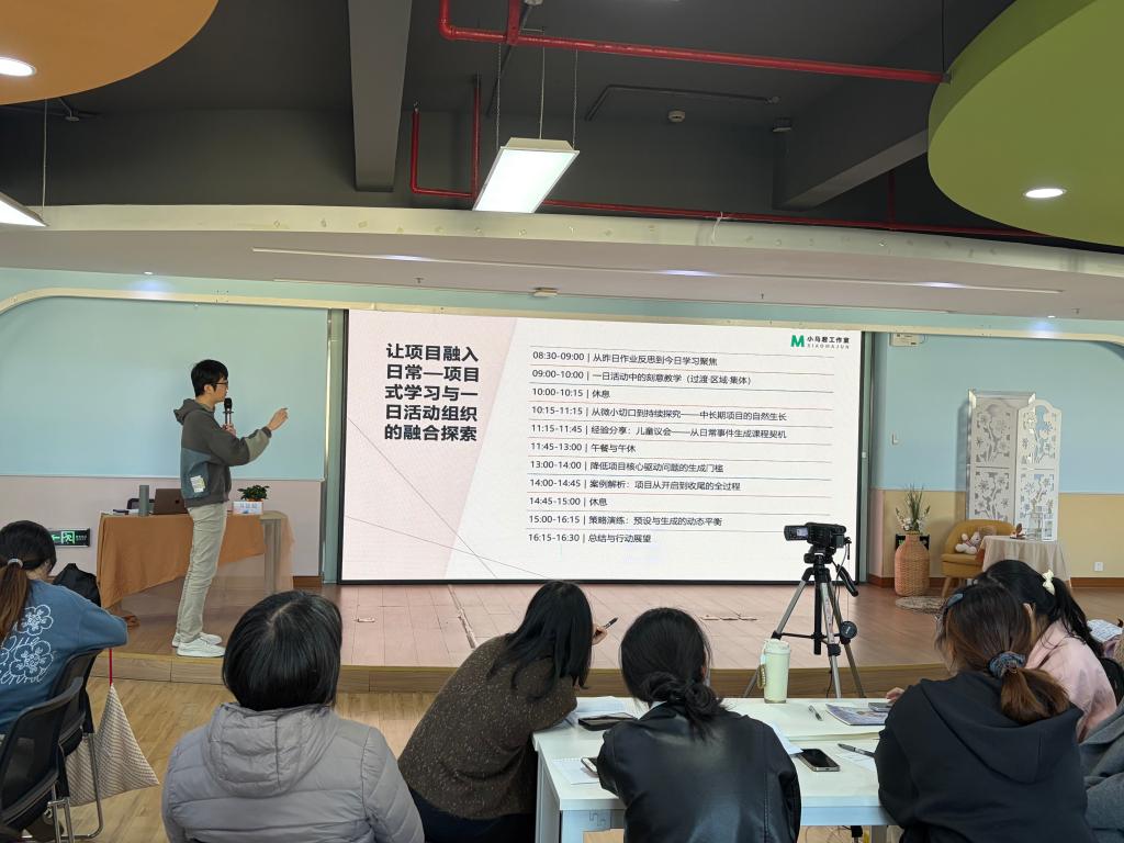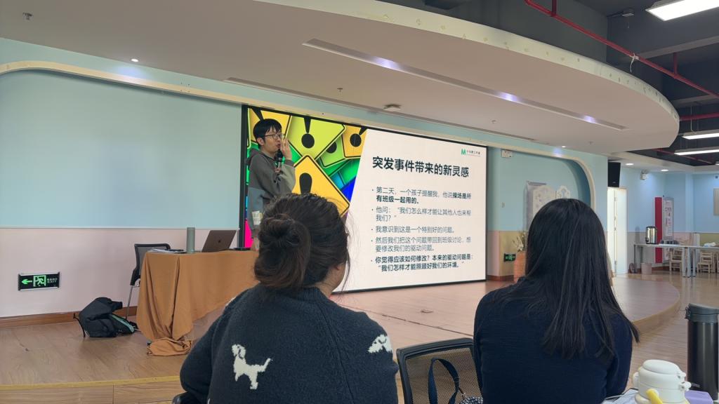 次日小马君带领我们寻找一起活动中的刻意教学,从微小切口到持续探究,支持中长期项目的自然生长。在讲解过程中,老师举了很多例子,让大家耳目一新,开阔的视野,并且从理论到实践,给了很多现场演练的机会,让教师实操,更好的理解操作过程和方法。