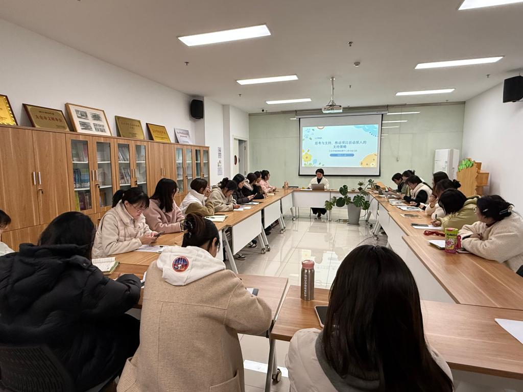 2025年11月18日,新毛幼儿园开展了以“思考与支持,推动项目活动深入的支持策略”为主题的研修活动。本次研修旨在深度剖析项目活动中的典型支持困境,深化教师对“支架理论”与“最近发展区”的理解与应用,并通过集体智慧生成可操作的支持策略,初步构建园本化的“项目活动教师支持策略库”,以全面提升教师在项目活动中的观察、分析与适时介入能力。
