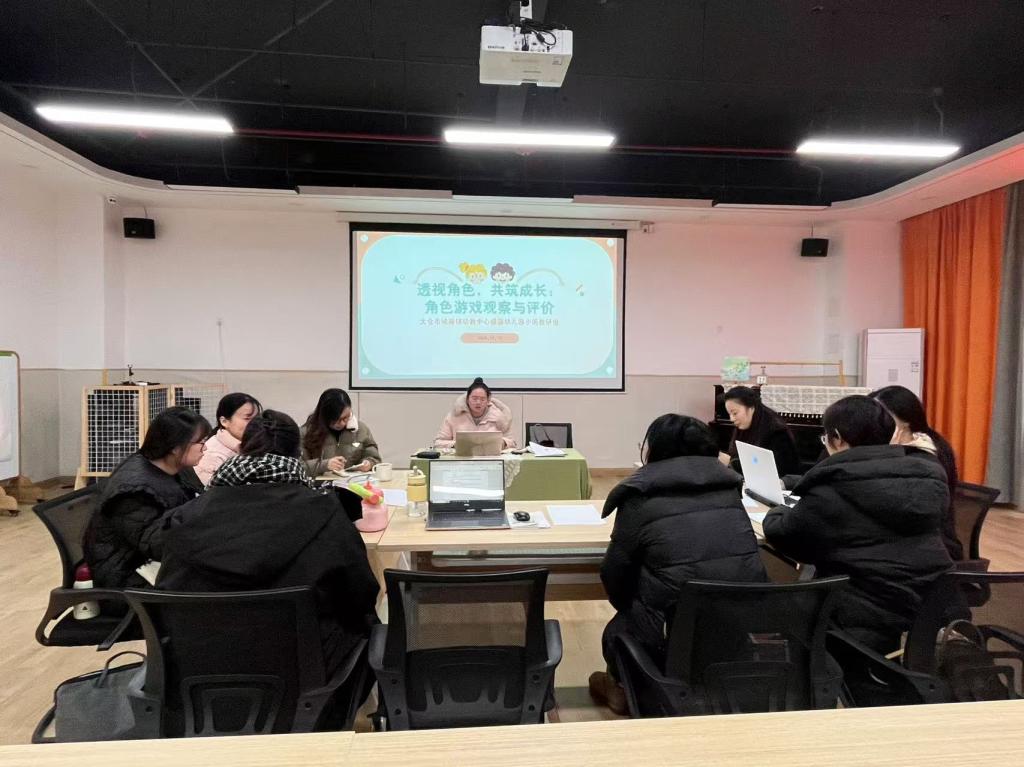 为强化教师对角色游戏观察的专业理解,提升教师对角色游戏观察的专业能力,了解幼儿角色游戏评价方式和策略,更加准确地评估幼儿的游戏水平和发展状况,给幼儿提供更加精准的教育支持。因此,深化教师们对角色游戏观察的专业认知,提升大家在游戏过程中敏锐捕捉幼儿成长细节的能力,太仓市城厢镇幼教中心盛园幼儿园小班组与中班组于2024年12月19日在会议室举行了一场“透视角色,共筑成长:角色游戏观察与评价”活动。