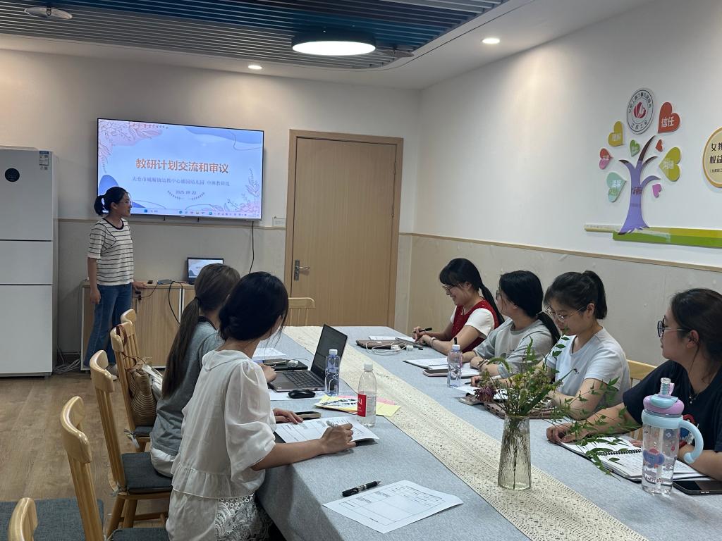 活动由教研组长朱琳老师主持,她首先围绕幼儿园园务计划及业务工作计划,清晰阐明本次研修目的:既要让教师全面掌握本学期教研组工作方向、目标与具体措施,更要通过集体探讨优化教研计划,确保每位教师对学期工作心中有数。随后,教师们共同学习教研计划初稿,深入了解计划核心内容——指导思想以 “活力教育” 内涵式发展为目标,依托江苏省 “十四五” 规划重点课题《新 “三全” 理念下幼儿科学启蒙教育的园本实践研究》,践行课程游戏化精神;“勤思乐学共研讨,互享互鉴筑师团”“聚焦科学探究处,细观善导育素养”“深挖周边资源地,精构园本课程章” 三大工作目标明确清晰;师徒携手、“蓝思社” 阅读、科学探究观察研讨等措施具体可行,9 月至次年1 月围绕科学探究的系列活动安排更是详实具体,为后续教研开展提供清晰路径。