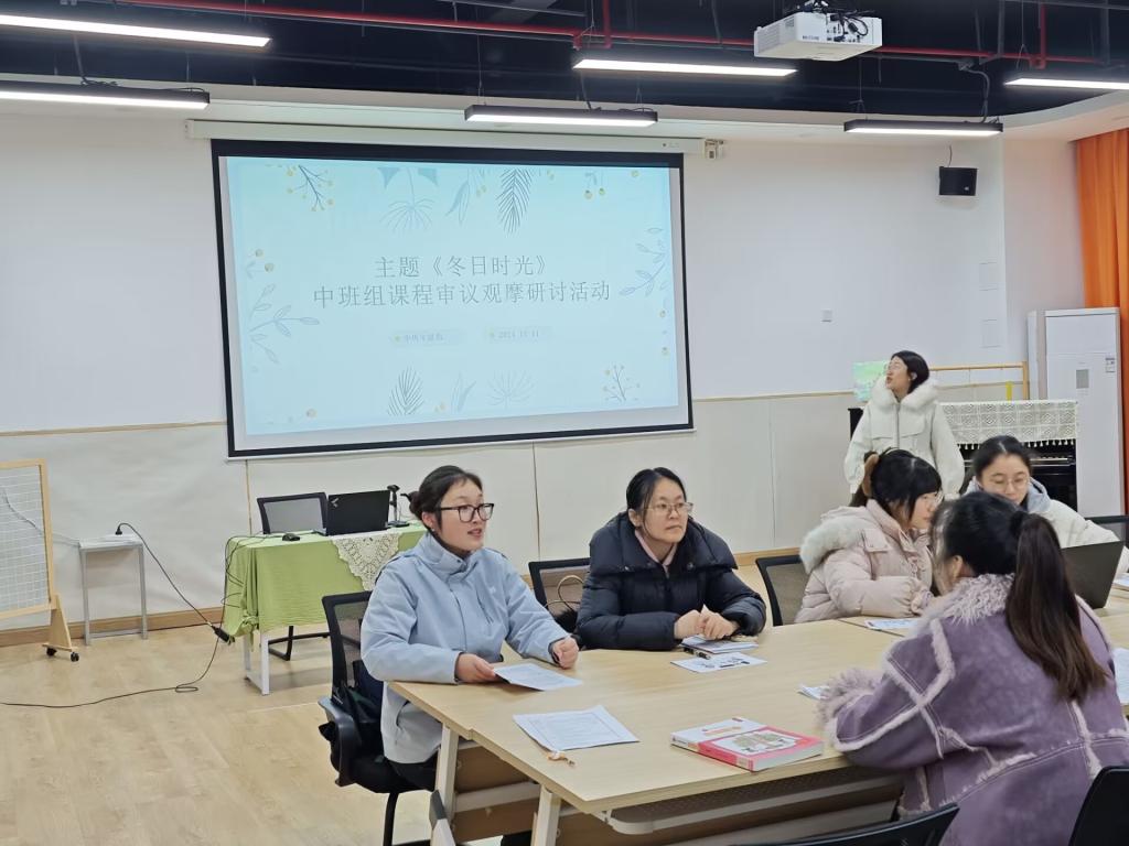 为了进一步推进幼儿园课程审议工作的实施,不断优化幼儿园主题课程,提升主题活动实施的适宜性和有效性,2024年12月11日下午,太仓市城厢镇幼教中心盛园幼儿园中班年级组进行了“冬日时光”的主题课程审议活动。