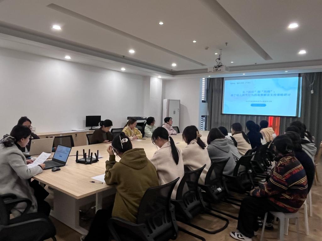 为深化教师对幼儿行为的理解与支持,实现师幼互动从“简单回应”到深度“同频共振”的转变,2025年11月27日下午,太仓市城厢镇幼教中心盛园幼儿园在园内多功能室开展了十一月份园本研修活动。本次研修以“从‘回应’到‘同频’”为主题,聚焦幼儿探究行为的观察解读与支持策略,通过案例复盘、分组研讨、策略提炼等方式,引导教师在实践中优化互动能力。