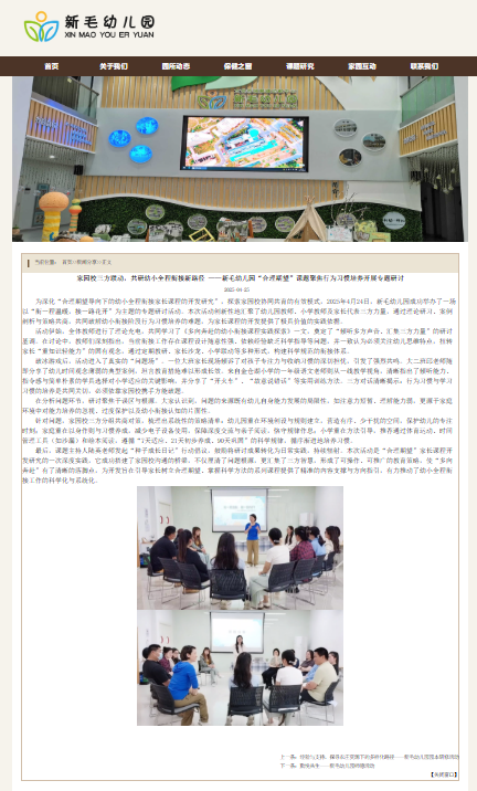 ㈠破冰小游戏及案例分享(抛出问题) ⒈主持人介绍活动背景、目标及参与人员,破冰游戏——大风吹(3min)。 ⒉案例分享 T1:我是大班的家长,在家我发现孩子的专注力非常不好,我比较担心孩子以后上了小学,老师在讲课的时候他的专注力不在老师上,另一方面比较担心孩子的收拾习惯,比如上了小学放学之后,他不知道要收拾自己的物品该怎么办呢?我也持续在和孩子沟通,但效果不大。 主持人:刚刚家长的分享我们感受到的是家长面对幼儿行为习惯的担忧,正如之前所说,其实我们老师也有这方面的困惑需要区解决,接下来我们邀请邱麟老师谈一谈,她在日常教学工作中遇到的问题案例。 T2:我是大二班的邱老师。我分享我们班的一位孩子,这位孩子在日常的时间观念不是很好,比如我们在收拾玩具或者排队时,他总是最后一位。 T3:我也发现了,就算当时给孩子一些方式方法,但是成效也不是很大。即时效果是有的,但长远来看还是效果不大。 主持人:通过老师和家长的案例,对于现今,针对我们幼儿园幼儿的行为习惯和学习习惯的困惑我们已经初步的了解了,那么面对这个问题小学老师们也来说一说,低年级,主要是一年级上学期哪些行为习惯和学习习惯,对小学学习生活会带来深远影响。 T4:我是金仓湖小学一年级的语文老师,我们孩子从大班到一年级的这段时间,首先家长和老师的确是要合作,要让孩子意识到现在已经是一名小学生了。我们的课堂是四十分钟。孩子刚开始的专注力可以从倾听开始,上课时孩子对于铅笔橡皮的兴趣会比较大,所以家长们可以选择最简单的款式。关于倾听,我们平时会做一些小游戏,例如用开小火车的形式。正式上课前我们会有三分钟的准备时间们,我会利用好这三分钟,并且还会提问问题。第三点是按指令做事,我发出一个指令,看孩子会不会按照我发出的指令做出动作。家长在家也可以和孩子做一些小训练,例如故意说错话,比如红色的香蕉黄色的苹果等,看他会不会发现你的错句。 主持人梳理:看来学习习惯和行为习惯对于幼儿小学后的学习生活有着非常重要的影响。那么就刚刚从家长和老师的交流中。我们发现其实在家庭中和幼儿园中,都有这共同的问题,也因此需要学校和家庭共同去培养引导的。 ㈡幼小衔接中的误区担忧(分析问题) ⒈讨论:结合案例问题,讨论当前幼小衔接工作中的误区及家长的担忧 讨论问题:关于案例中的问题(来源、原因),分享自己的想法 总结梳理:幼小衔接中幼儿面临的行为习惯的问题来源于幼儿自身能力发展和成长的忽视。幼儿能力因素,年龄小、注意力短暂、以机械记忆为主、理解能力弱,同时生活习惯和能力发展不平衡,如时间管理差、自理能力不足;家庭因素,只重视知识学习而忽视能力培养,对幼小衔接认识不足,过度保护导致幼儿依赖性强。 ㈢问题讨论,策略梳理 分组讨论:面对幼小衔接中关于行为习惯(包括学习习惯、日常生活行为习惯)的问题,可以怎么做。 重点从家庭教育、幼儿园教育两个板块进行讨论。 T5:幼儿园从营造环境、制定规则等来给到小朋友一些提高专注力的方法。 T6:家庭方面是主要从习惯入手,不仅要培养小朋友的生活习惯,大人也要以身作则。另外一点就是沟通,和孩子时不时进入深入交流。 T7:小学方面可以从运动方向的培养,例如篮球、羽毛球。第二是循序渐进的原则,从当下开始慢慢的一步一步往前。不要想着现在做某一件事情还早,其实不早。习惯有七天的不适应期,90天的巩固期。其次是减少短视频,多提供绘本。时间方面可以使用沙漏等工具给孩子计时。慢慢的培养孩子。 梳理策略和习惯培养的法则分享:7天、21天、90天法则(资料收集) ㈣总结提炼,后续方向 ⒈园长总结活动,提出倡议:种子成长日记 ⒉结合幼小衔接讨论成果在日常教学活动中持续实施和辐射。 |