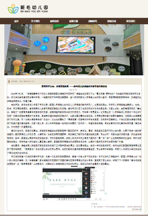 ㈠理论学习:《家庭入学准备认知对幼儿入学准备的影响研究》 ⒈理论学习:《家庭入学准备认知对幼儿入学准备的影响研究》 ⒉教师讨论: T1:文章中强调幼儿的入学准备本应涵盖身心、社会、生活、学习四大维度,是培养幼儿终身可持续发展能力的过程,而非追求短期“抢跑”效益的工具。 T2:这让我们意识到这种矛盾背后,是整个幼小衔接生态的失衡。 T3:解决问题不能只苛责家长,更需要多方协同发力。 T4:文中提出的“入学准备与入学适应一体化评价体系”,为打破衔接断层提供了极具价值的思路。 T5:如果能通过连续的儿童发展评价,让家长了解“良好的社交能力”“自主整理书包的习惯”与“认识汉字”同样重要,或许就能逐步扭转其“重知识、轻能力”的认知。 T6:文章针对家长认知差异设计的“分类分层指导路径”,也体现了教育指导的科学性与温度 T7:文中提出按幼儿园性质、幼儿年龄段细分指导内容,既尊重了家长的个性化需求,又能通过专业引导,让不同背景的家长都能理解科学衔接的内涵。 T8:这种“精准滴灌”式的指导,远比泛泛的政策宣讲更有力量,也让我看到了家庭教育指导从“粗放”走向“精细”的可能性。 ⒊小结:幼小科学衔接不是某一方的“独角戏”,而是家庭、幼儿园、小学、政府、社会共同参与的“交响乐”。文中给出的对策——建立系统化家庭教育指导课程、加强培训机构监管、拓展立体化宣传渠道,每一条都指向“协同”二字。比如,通过政府牵头的多部门联合执法打击超前培训,通过公益宣讲团为家长答疑解惑,通过幼小联动平台实现资源互通,这些举措若能落地,便能逐步构建起“理念共识、行为同频”的衔接生态。 ㈡工作室成员交流学年家教指导个案 13名成员在基于“悦动”“悦心”“悦和”3个小组分别交流的基础上,推荐的3名代表进行家教指导个案交流:吴与伦、唐洁、陶宏英 领衔人: 优点:三位成员给大家带来的个案都是来自一线的真实、鲜活的案例,孩子的行为习惯、心理韧性、社会交往能力等方面,并能基于孩子的实际表现进行持续的、有针对的家园沟通与指导,交流中产生了许多富有创造性的家教指导策略,不再局限于说教,而是引入了游戏、绘本、家庭会议等多种形式,使家庭教育指导这件事在“观察发现幼儿问题——幼儿行为分析——家园双向沟通——家教指导”的动态过程中形成闭环。 改进:策略多基于经验,与儿童发展心理学、家庭教育学等理论的集合不够紧密,使得个案的学术价值与推广高度受限。 ㈢工作室各成员交流年度个人收获(见各成员学年总结) 领衔人:大家的总结较客观、全面地反映了各自一年来的成长轨迹。特别是大家的家庭教育指导意识得到了转变,要想我们的教育取得更好地成效,“指导家长”也是很重的事。而且,这一年来,大家的家园沟通、指导的技能进步明显,所以在家教指导过程中的信心也是不断增强。 ㈣工作室领衔人回顾、总结年度活动情况 |